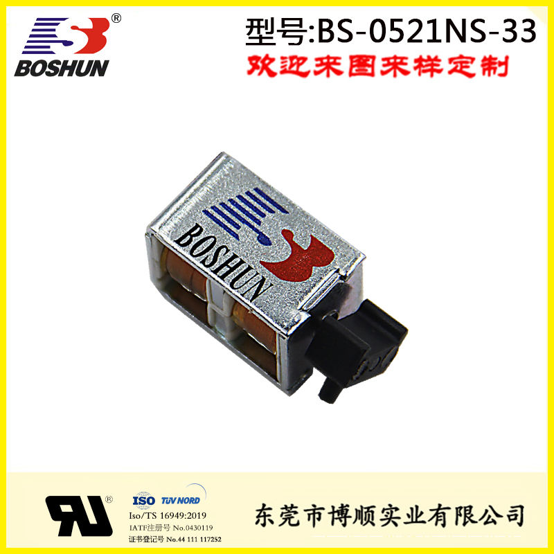保持式電磁鐵 BS-0521NS-33是由東莞博順電磁鐵廠家研發(fā)設(shè)計并生產(chǎn)的一款電磁鐵,此保持式電磁鐵用在箱柜上,具有結(jié)構(gòu)可改,參數(shù)可調(diào)優(yōu)點。