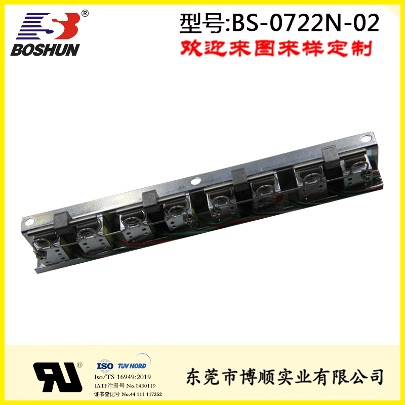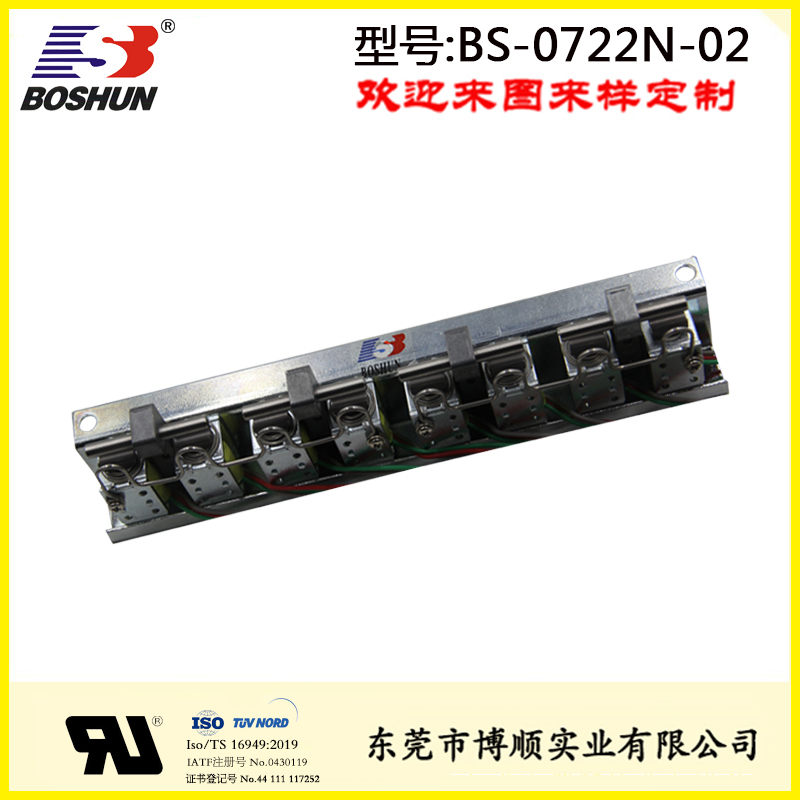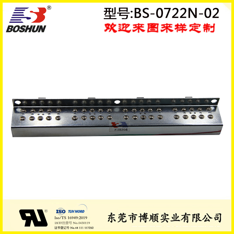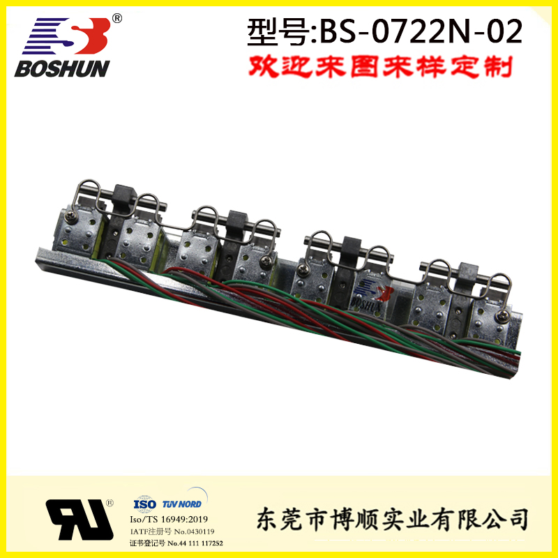 電腦橫機電磁鐵BS-0722N-02是由東莞博順電磁鐵廠家研發設計并生產的一款電磁鐵,此電磁鐵用在電腦橫機上,具有結構可改,參數可調優點。