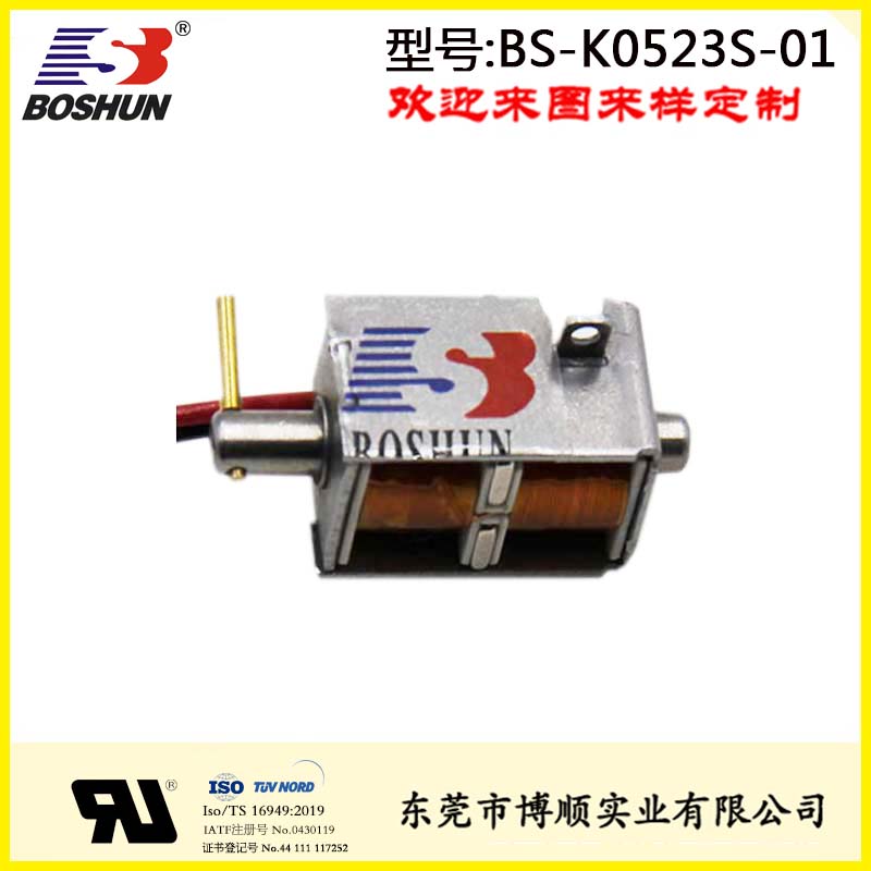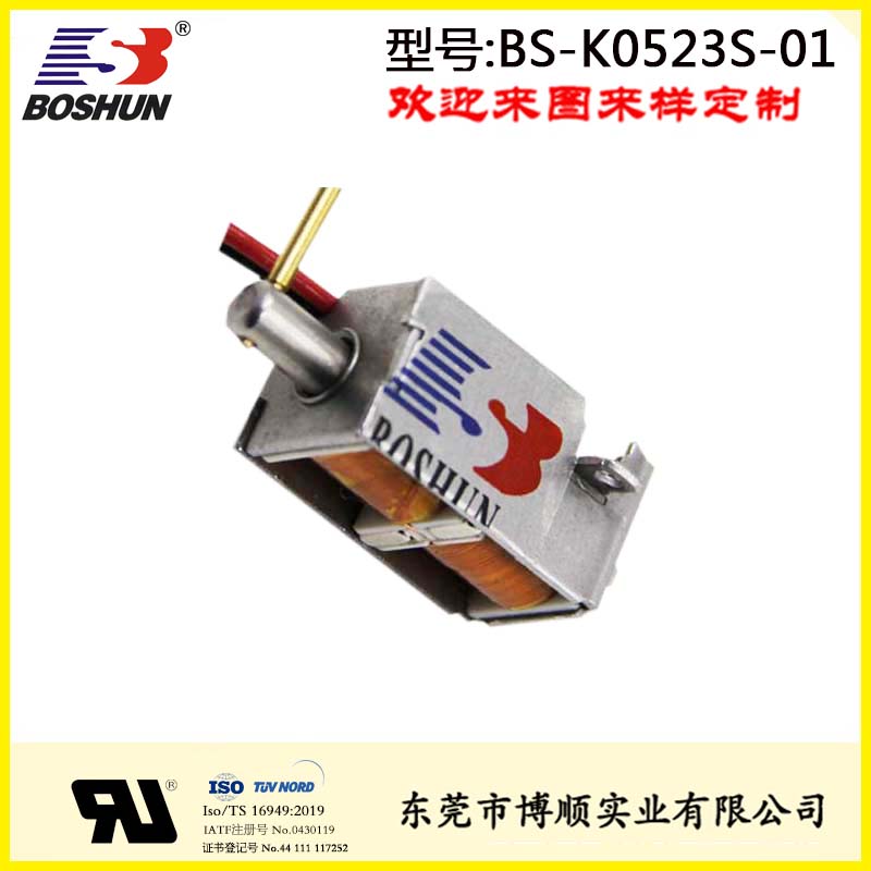 雙保持推式電磁鐵BS-K0523S-01是由東莞博順電磁鐵廠家研發設計并生產的一款電磁鐵,此電磁鐵用在保管箱上,具有結構可改,參數可調優點。