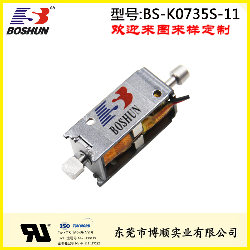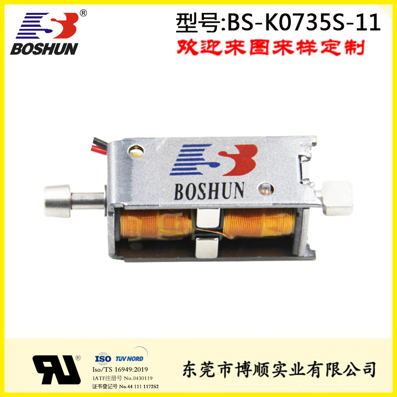 充電槍電磁鎖 BS-K0735S-11是由東莞博順電磁鐵廠家研發(fā)設(shè)計并生產(chǎn)的一款電磁鐵,此電磁鎖用在充電槍上,具有結(jié)構(gòu)可改,參數(shù)可調(diào)優(yōu)點。