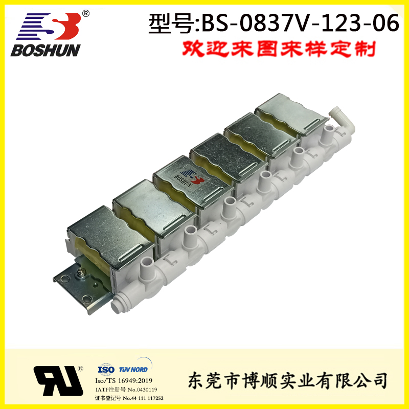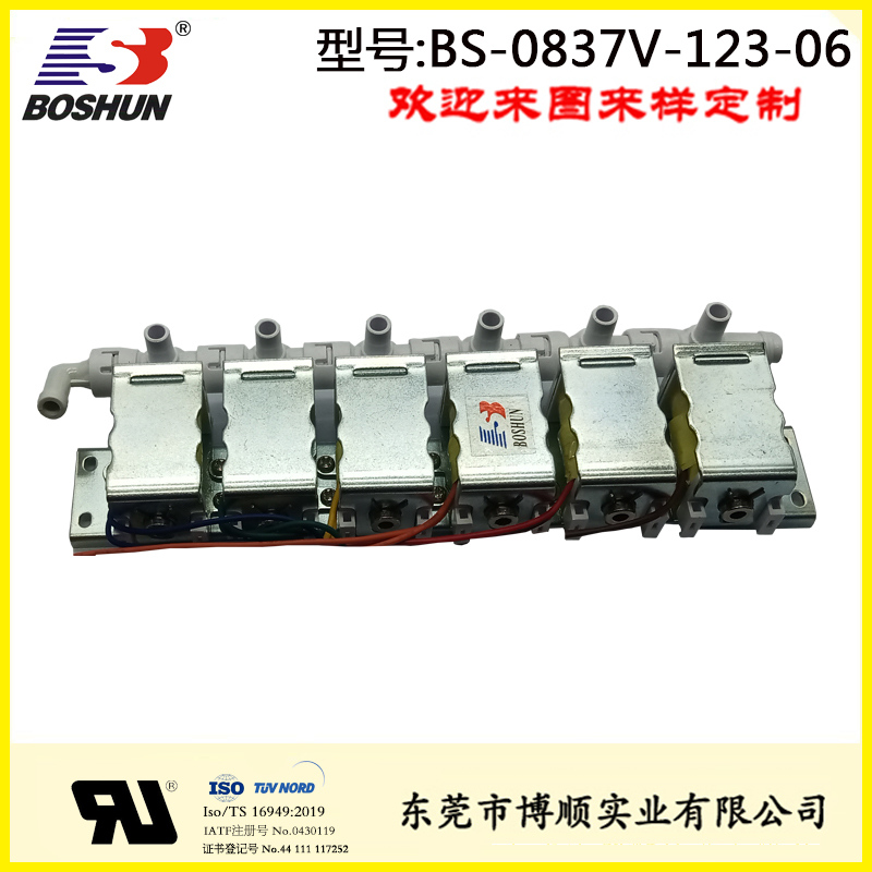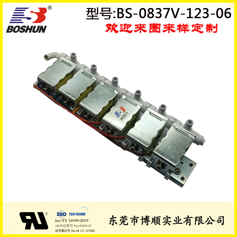 六通醫(yī)療氣閥BS-0837V-123-06是由東莞博順電磁鐵廠家研發(fā)設(shè)計(jì)并生產(chǎn)的一款電磁鐵,此電磁閥用在氣墊床上,具有結(jié)構(gòu)可改,參數(shù)可調(diào)優(yōu)點(diǎn)。