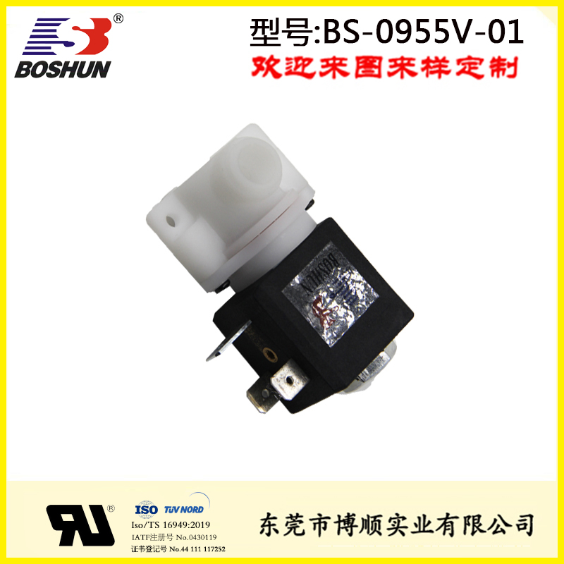 飲水機電磁閥 BS-0955V-01是由東莞博順電磁鐵廠家研發(fā)設(shè)計并生產(chǎn)的一款電磁閥,此類飲水機電磁閥用于飲水機上,具有結(jié)構(gòu)可改,參數(shù)可調(diào)優(yōu)點。