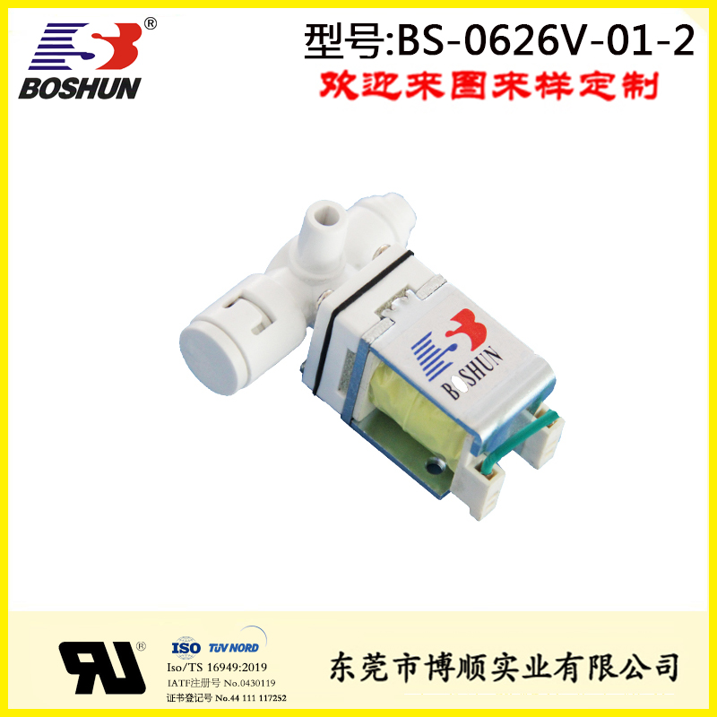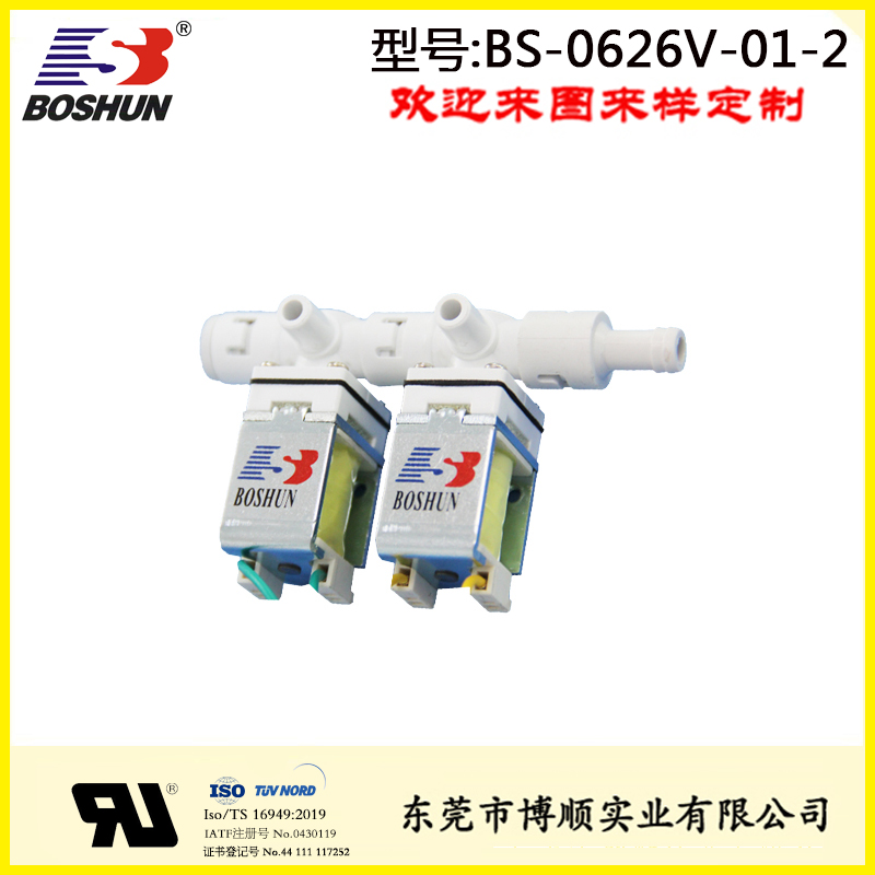按摩器材電磁閥BS-0626V-01-2是由東莞博順電磁鐵廠家研發設計并生產的一款電磁鐵,此電磁閥用在按摩器材上,具有結構可改,參數可調優點。