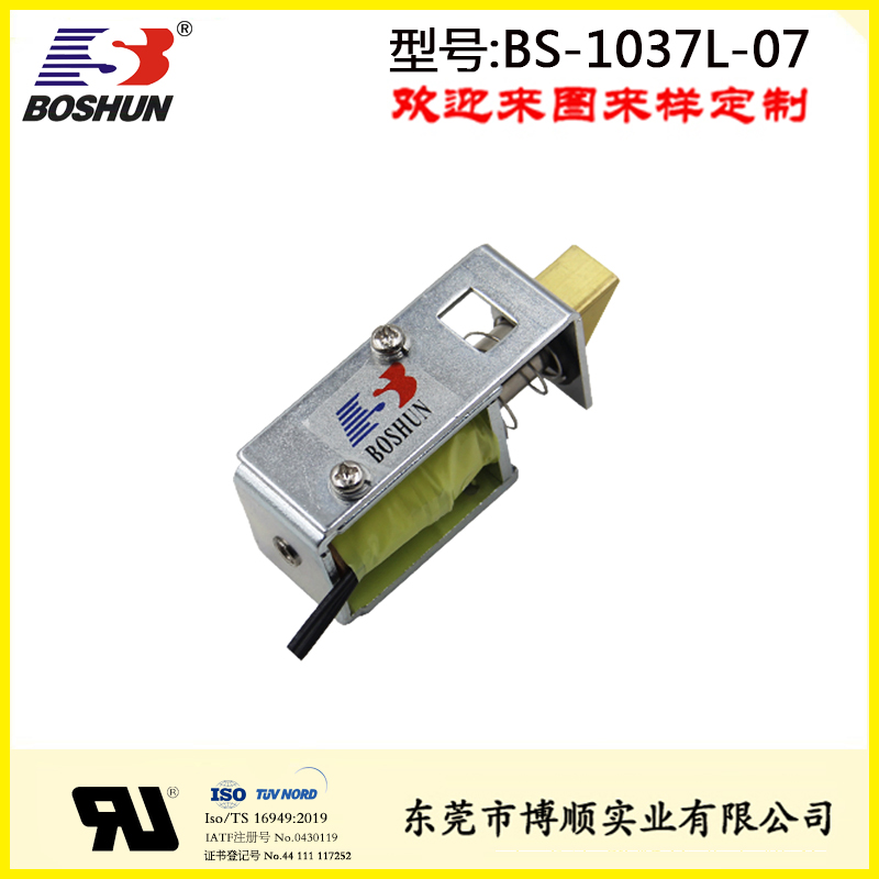 電磁門鎖BS-1037L-07是由東莞博順電磁鐵廠家研發設計并生產的一款電磁鐵,此電磁門鎖用在電磁門上,此電磁門鎖具有結構可改,此電磁門鎖參數可調優點。
