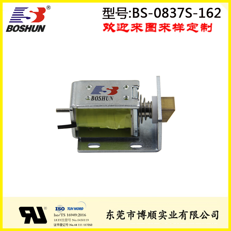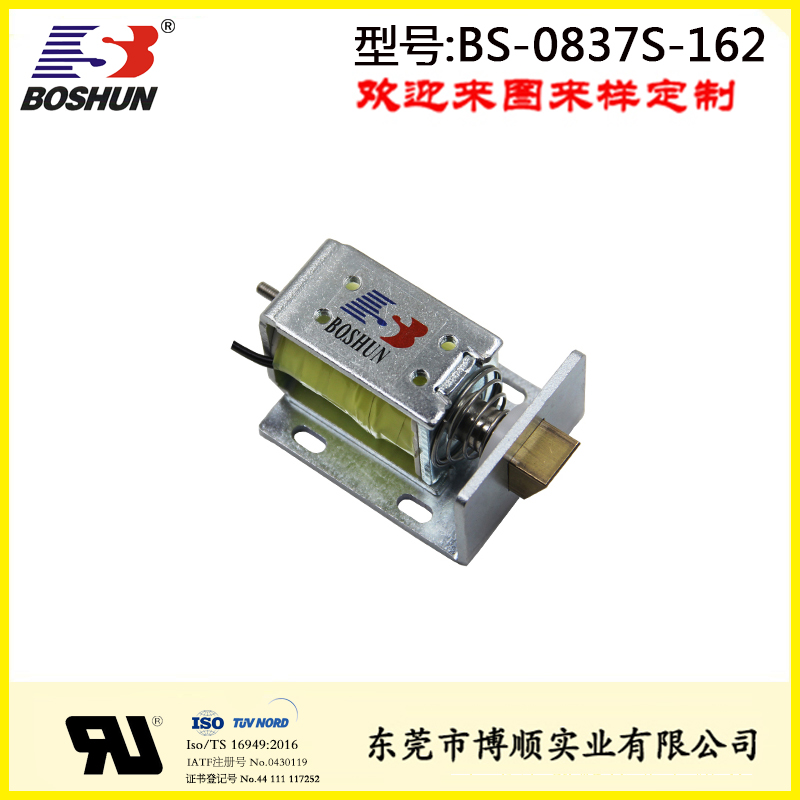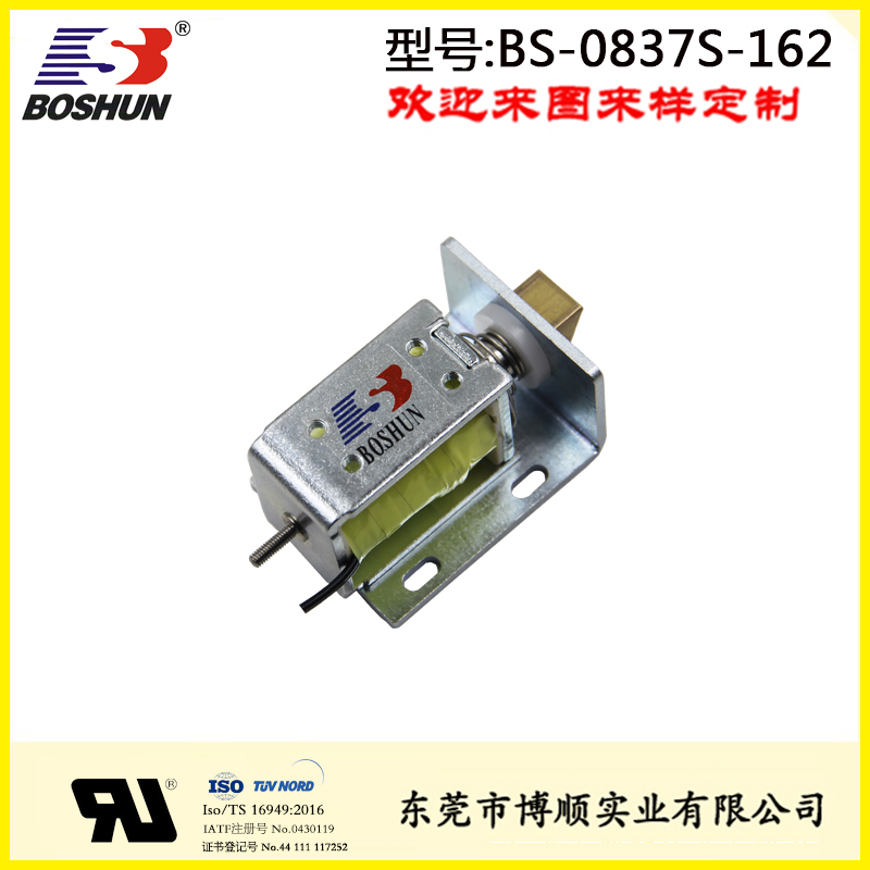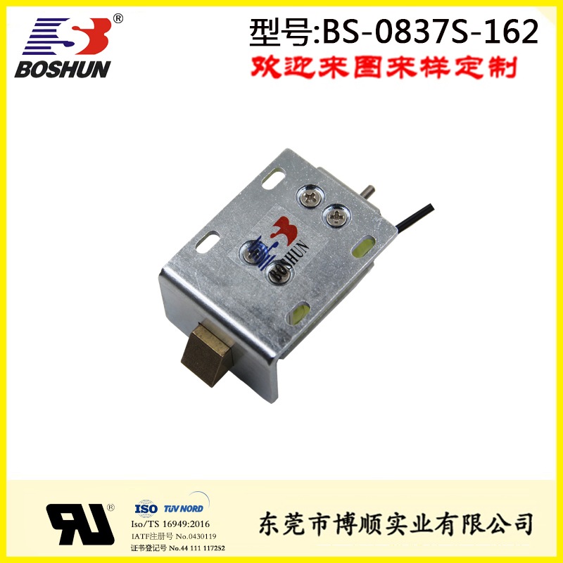 微型電磁鎖BS-0837S-162是由東莞博順電磁鐵廠家研發設計并生產的一款電磁鐵,此電磁鎖用在柜門上,具有結構可改,參數可調優點。