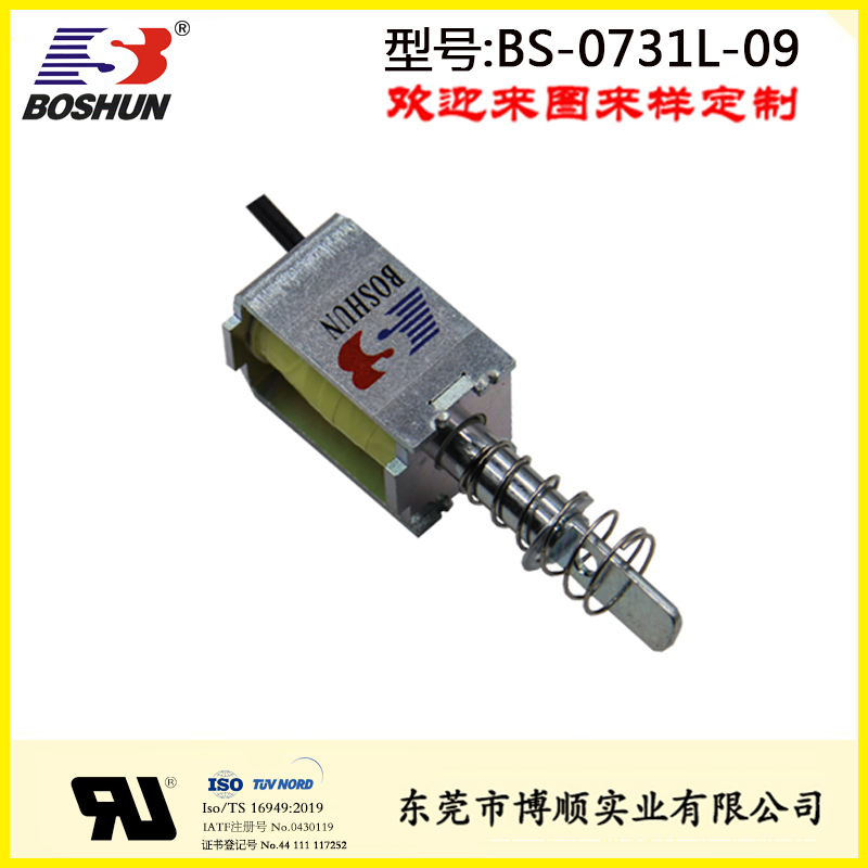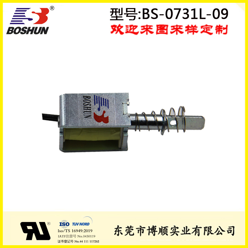 快遞寄存柜電磁鎖用電磁鐵BS-0731L-09是由東莞博順電磁鐵廠家研發設計并生產的一款電磁鐵,此電磁鐵用在快遞柜鎖上,具有結構可改,參數可調優點。