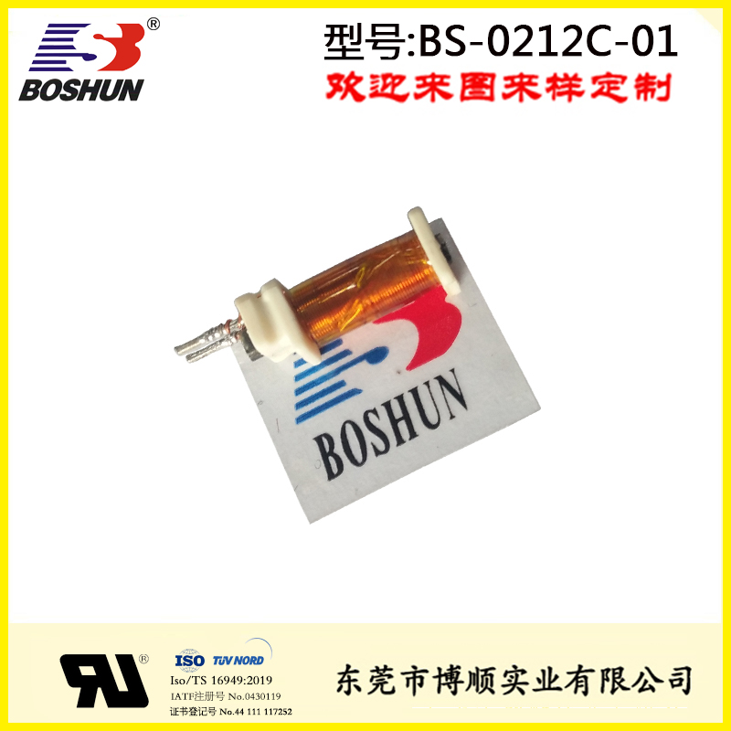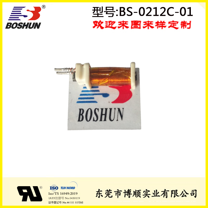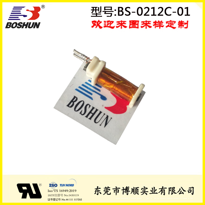 電磁鐵線圈BS-0212C-01是由東莞博順電磁鐵廠家研發設計并生產的一款電磁鐵,此電磁鐵線圈用在選針器上,具有結構可改,參數可調優點。