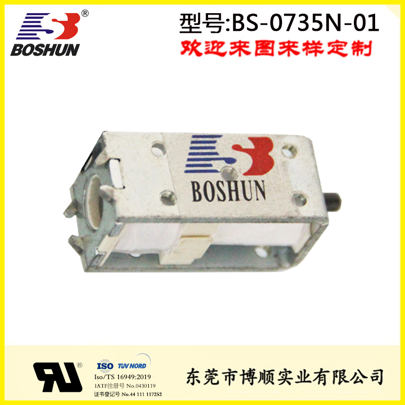 吊目接針電磁鐵 BS-0735N-04是由東莞博順電磁鐵廠家研發(fā)設(shè)計并生產(chǎn)的一款電磁鐵,此類吊目接針電磁鐵用于紡織機械上,具有結(jié)構(gòu)可改,參數(shù)可調(diào)優(yōu)點。