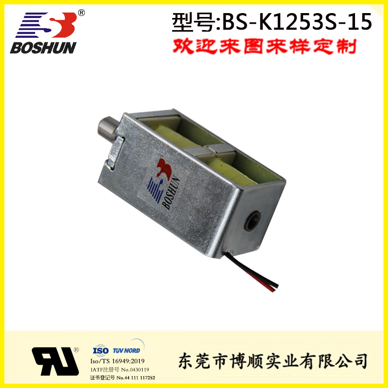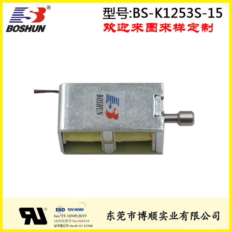 電腦橫機電磁鐵BS-K1253S-15是由東莞博順電磁鐵廠家研發設計并生產的一款電磁鐵,此電腦橫機電磁鐵用在電腦橫機上,具有結構可改,參數可調優點。
