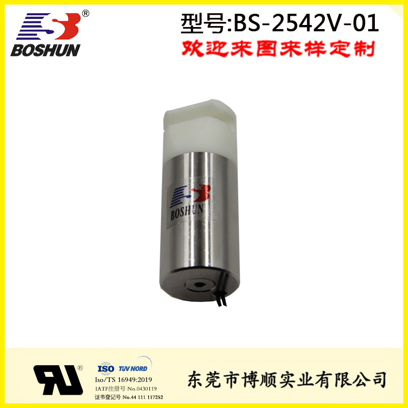 醫療設備電磁閥BS-2542V-01是由東莞博順電磁鐵廠家研發設計并生產的一款電磁鐵,此電磁閥用在醫療設備上,具有結構可改,參數可調優點。