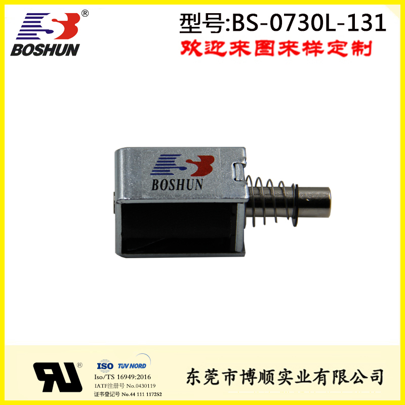 1.名稱型號(P/N):箱柜電磁鎖 快遞柜電磁鐵 直流電磁鐵 電磁鐵推拉式 BS-0730L-131
