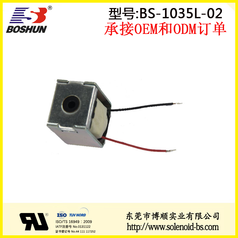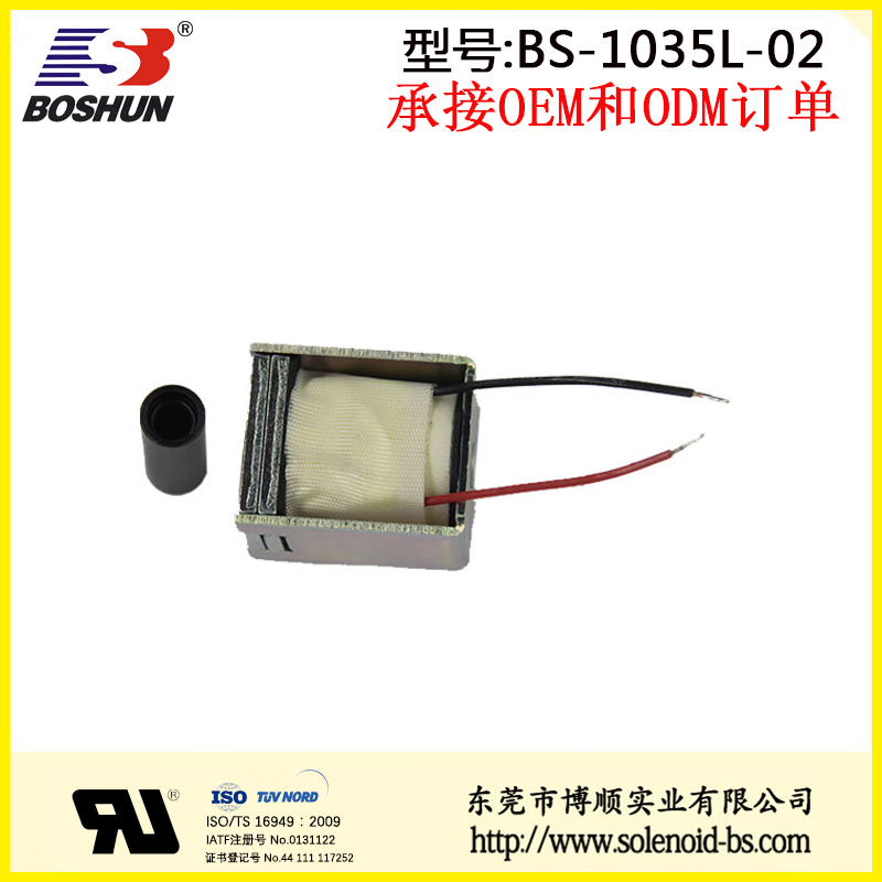 收銀機(jī)電磁鐵推拉電磁鐵BS-1035L-02是由東莞博順電磁鐵廠家研發(fā)設(shè)計(jì)并生產(chǎn)的一款電磁鐵,此電磁鐵用在收銀機(jī)上,具有結(jié)構(gòu)可改,參數(shù)可調(diào)優(yōu)點(diǎn)。