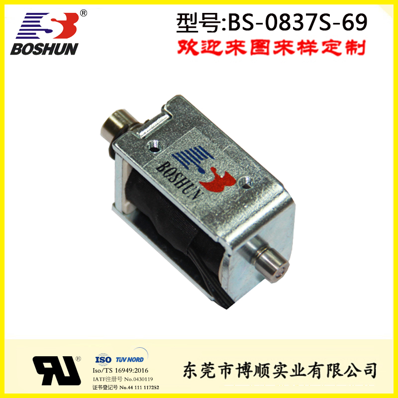 自助儲物柜電磁鎖 BS-0837S-69 是由東莞博順電磁鐵廠家研發設計并生產的一款電磁鐵,此自助儲物柜電磁鎖用在自助儲物柜上,具有結構可改,參數可調優點。