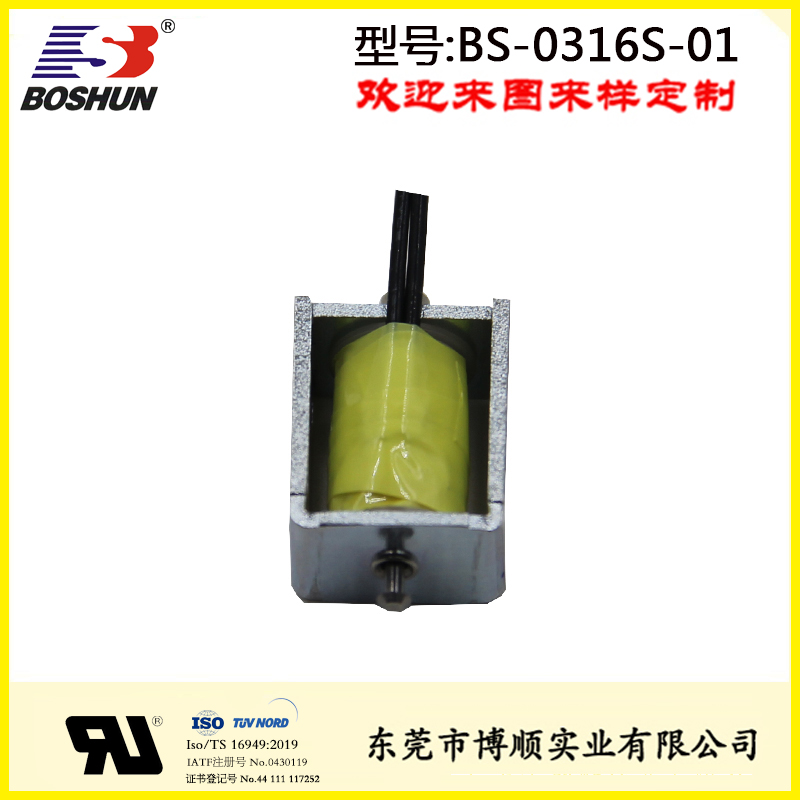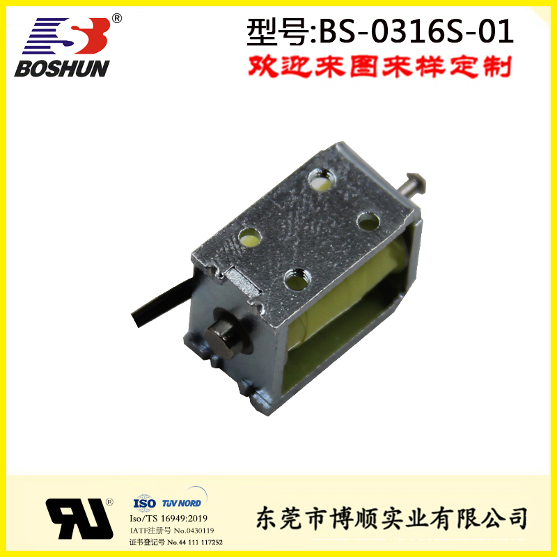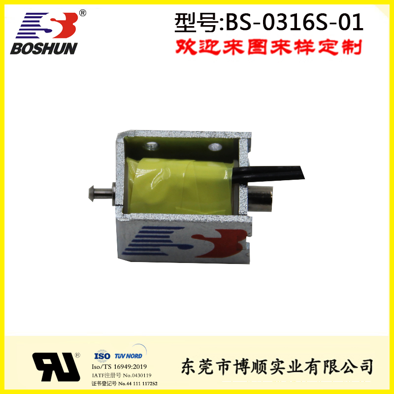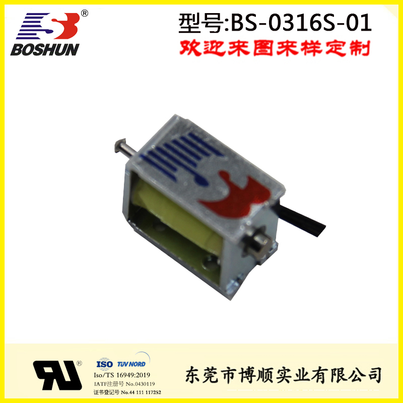 微小型電磁鐵BS-0316S-01是由東莞博順電磁鐵廠家研發(fā)設(shè)計并生產(chǎn)的一款電磁鐵,具有結(jié)構(gòu)可改,參數(shù)可調(diào)優(yōu)點。