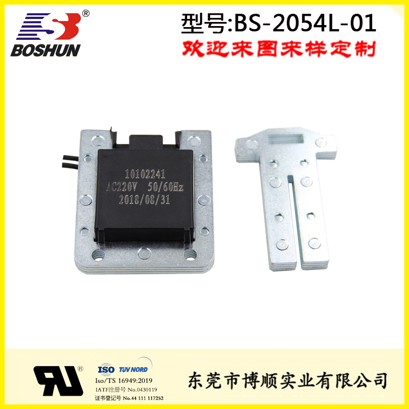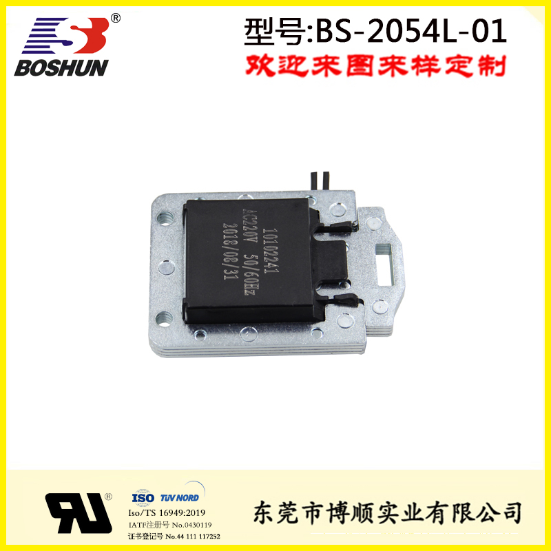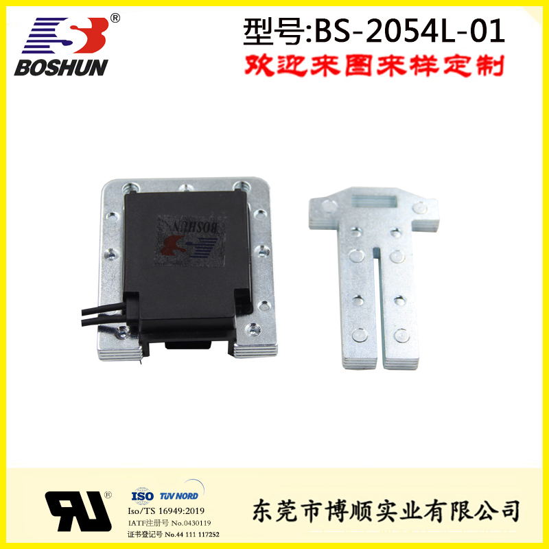販賣機電磁鐵BS-2054L-01是由東莞博順電磁鐵廠家研發設計并生產的一款電磁鐵,此電磁鐵用在販賣機上,具有結構可改,參數可調優點。