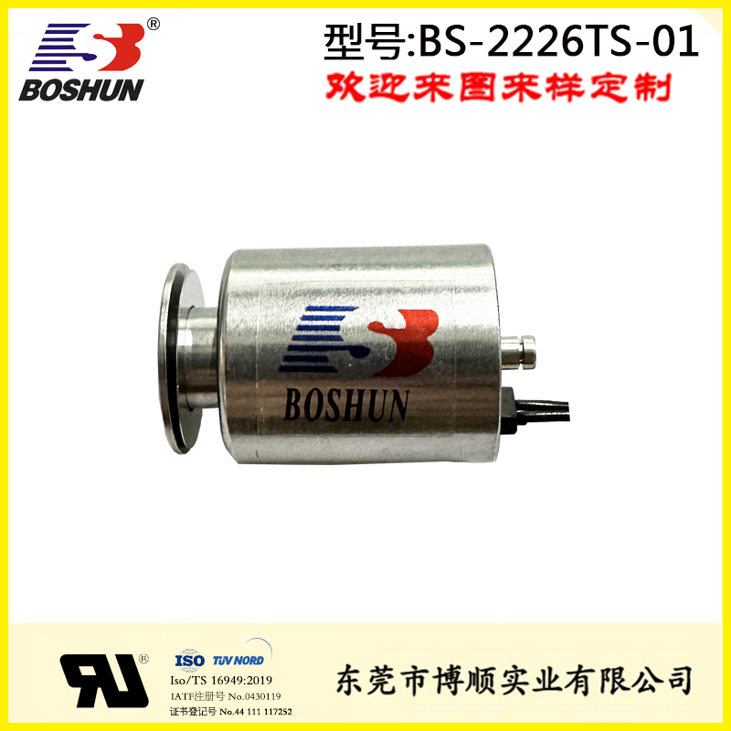充電槍電磁鎖BS-2226TS-01是由東莞博順電磁鐵廠家研發設計并生產的一款充電槍電磁鎖,此電磁鎖用在充電槍上,具有結構可改,參數可調優點。