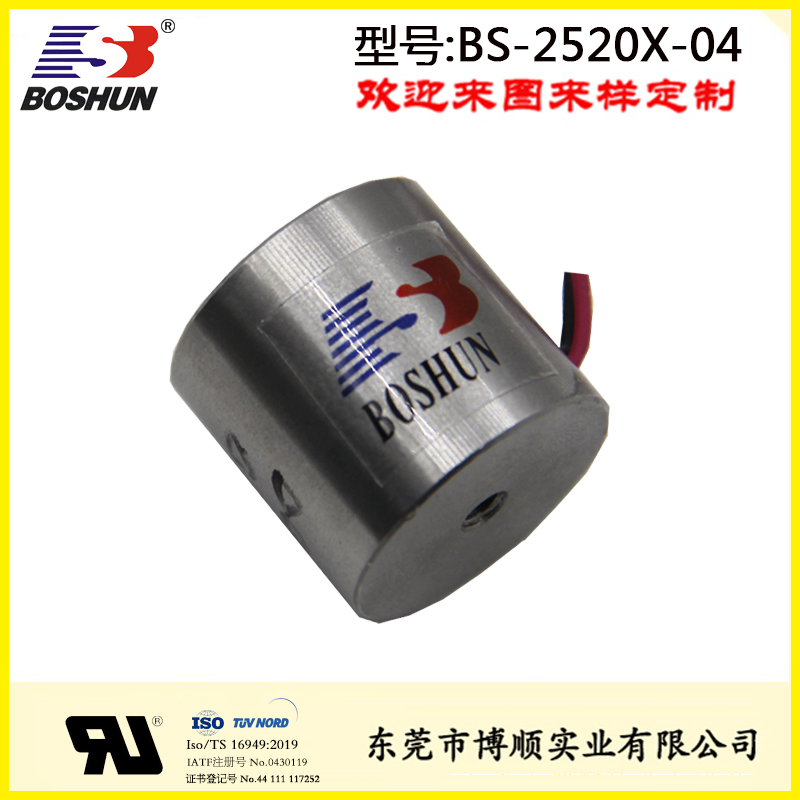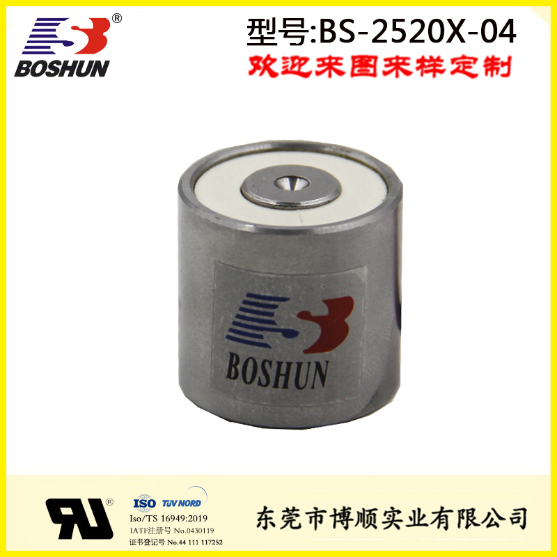 自保持吸盤電磁鐵BS-2520X-04是由東莞博順電磁鐵廠家研發設計并生產的一款電磁鐵,此電磁鐵用在機械手臂上,具有結構可改,參數可調優點。