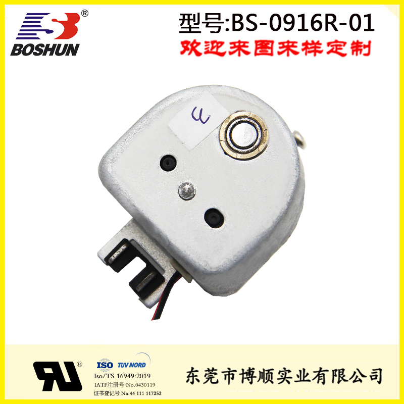 ATM機旋轉電磁鐵BS-0916R-01是由東莞博順電磁鐵廠家研發設計并生產的一款電磁鐵,此電磁鐵用在ATM機上上,具有結構可改,參數可調優點。