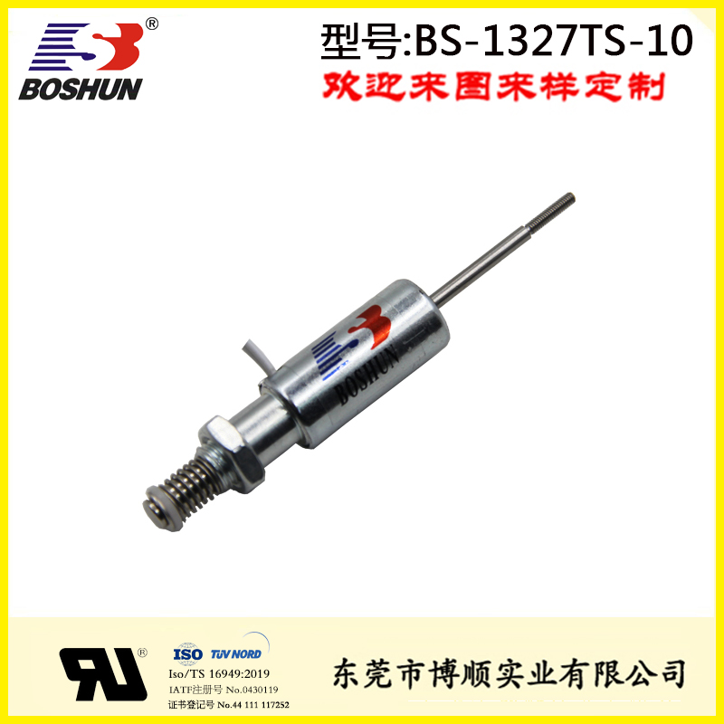 設備鎖電磁鐵BS-1327TS-10是由東莞博順電磁鐵廠家研發設計并生產的一款電磁鐵,此電磁鐵用在設備鎖上,具有結構可改,參數可調優點。