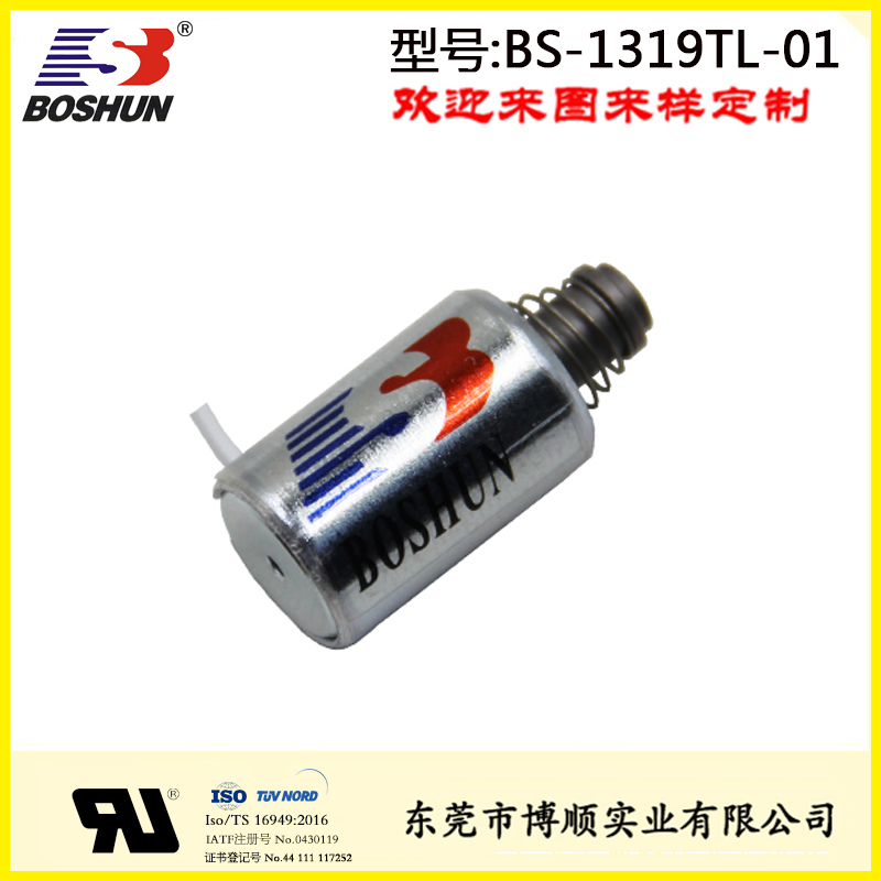 智能家電電磁鐵BS-1319TL-01是由東莞博順電磁鐵廠家研發設計并生產的一款電磁鐵,此電磁鐵用在智能家電上,具有結構可改,參數可調優點。