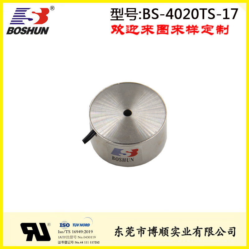 汽車后備箱電磁鐵 BS-4020TS-16是由東莞博順電磁鐵廠家研發設計并生產的一款電磁鐵,此汽車后備箱電磁鐵用在汽車后備箱上,具有結構可改,參數可調優點。