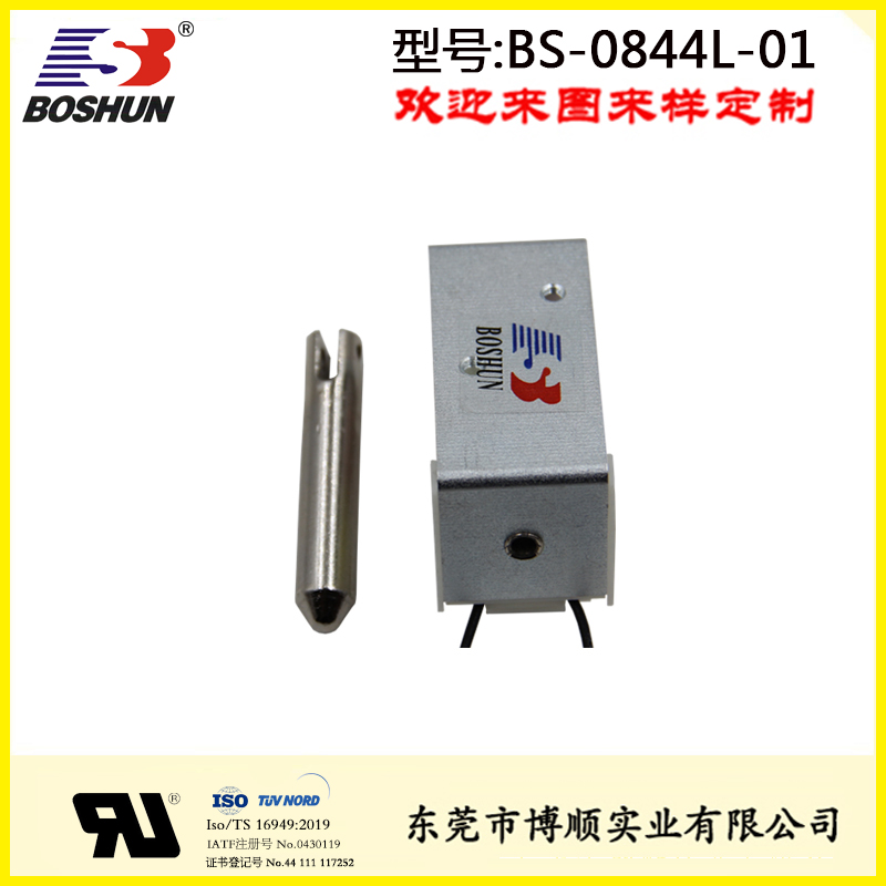 消防設備電磁鐵BS-0844L-01是由東莞博順電磁鐵廠家研發設計并生產的一款電磁鐵,此電磁鐵用在消防設備上,具有結構可改,參數可調優點。